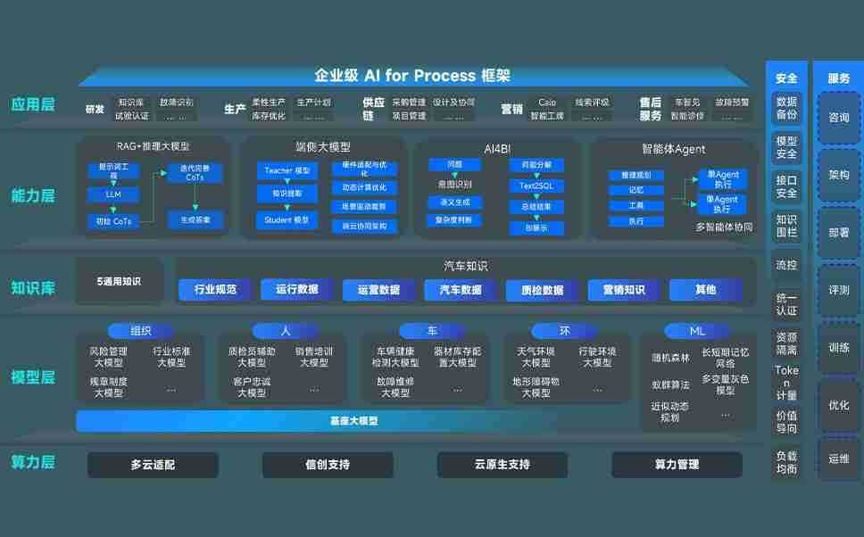 端到端的一站式AI工作空间深度融合了从企业战略规划到日常经营的全流程业务板块,,定向解决车企内部领域多、、、部门多、、链条长、、、、场景碎片化等难题,,,,支持车企快速构建以AI为核心的生产力写作体系,,实现任务执行与AI能力的无缝集成与交互