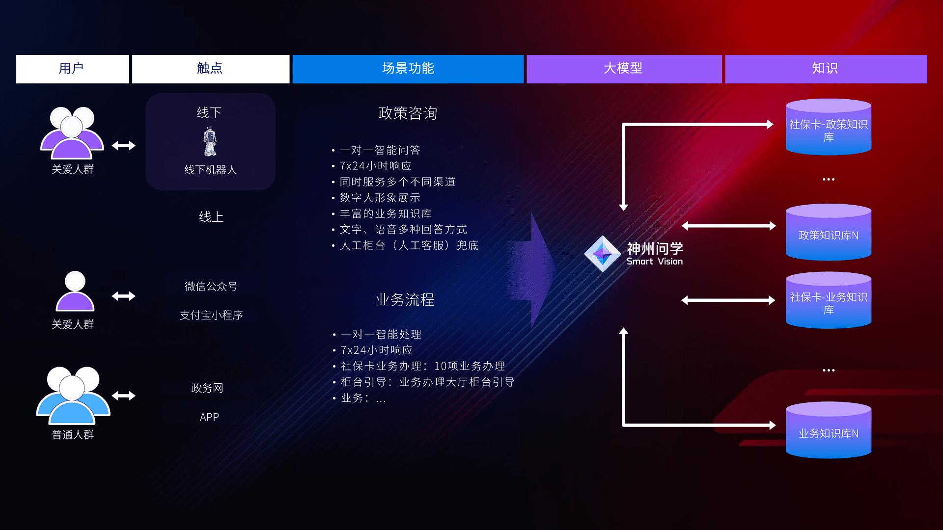 在服务大厅部署客服机器人,,在线上应用和小程序配置客服数字人,,,724小时为群众解答常规问题,,客服机器人无法处理的,,转现场人工处理。。